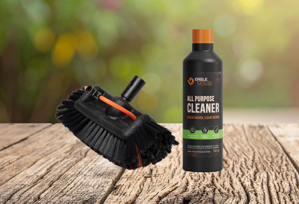 Eine herkömmliche Bürste reicht für Rollläden oft nicht aus. Eagle Extend empfiehlt die Fünf-Flächen-Bürste . Dank ihrer seitlichen Borsten reinigt diese Bürste nicht nur die glatte Oberfläche, sondern auch die tiefen Rillen der Lamellen und die Ecken der Rahmen, ohne den Kunststoff zu zerkratzen.