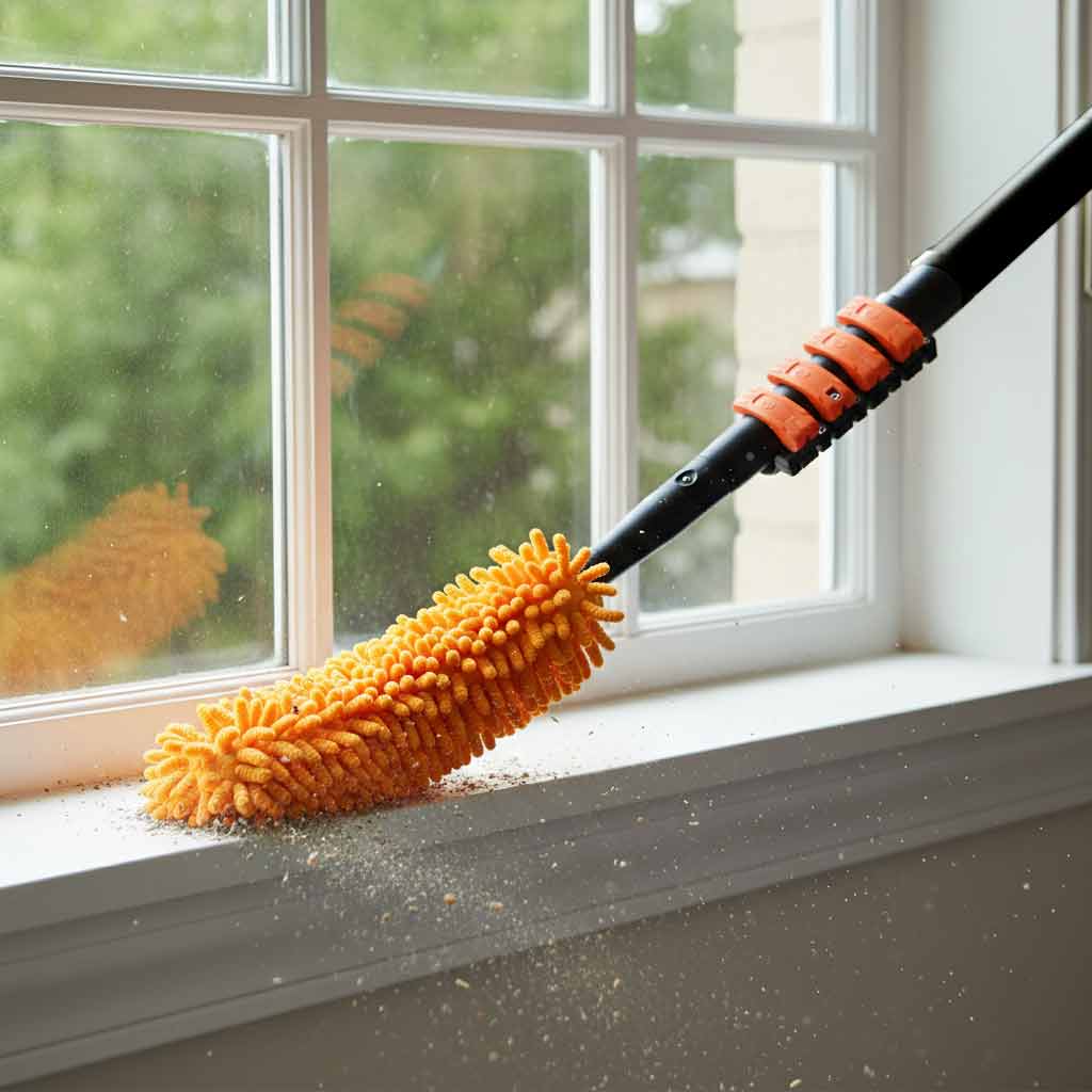 - Der Staubwedel (Staubmopp): Für empfindliche Gegenstände wie Lampen, Überwachungskameras und glatte abgehängte Decken verwenden Sie einen antistatischen Staubwedel oder eine weiche Bürste. Diese nehmen feinen Staub auf, ohne Kratzer zu verursachen.
