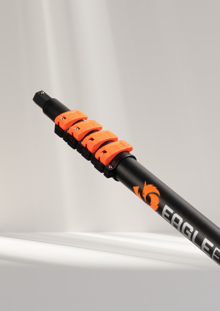 Eagle Extend® staat voor ongeëvenaarde stabiliteit en controle. Met ons HexaLock® 1-klik systeem wissel je moeiteloos accessoires, terwijl het SureLock vergrendelsysteem en het 25 mm premium aluminium eindsegment zorgen voor maximale stijfheid op elke hoogte. De AlignTrack V-groeftechnologie houdt alle segmenten perfect op lijn, ondersteund door comfortabele MultiHold grips en een robuuste GroundGuard einddop. Elk onderdeel klikt naadloos in ons modulaire ecosysteem en is gebouwd voor dagelijks, professioneel gebruik — met de betrouwbaarheid en service die je van Eagle Extend® mag verwachten.